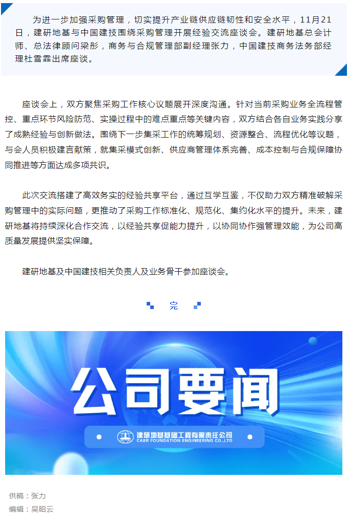 共促集采业务提质增效 | 建研地基与中国建技开展采购管理经验交流座谈会