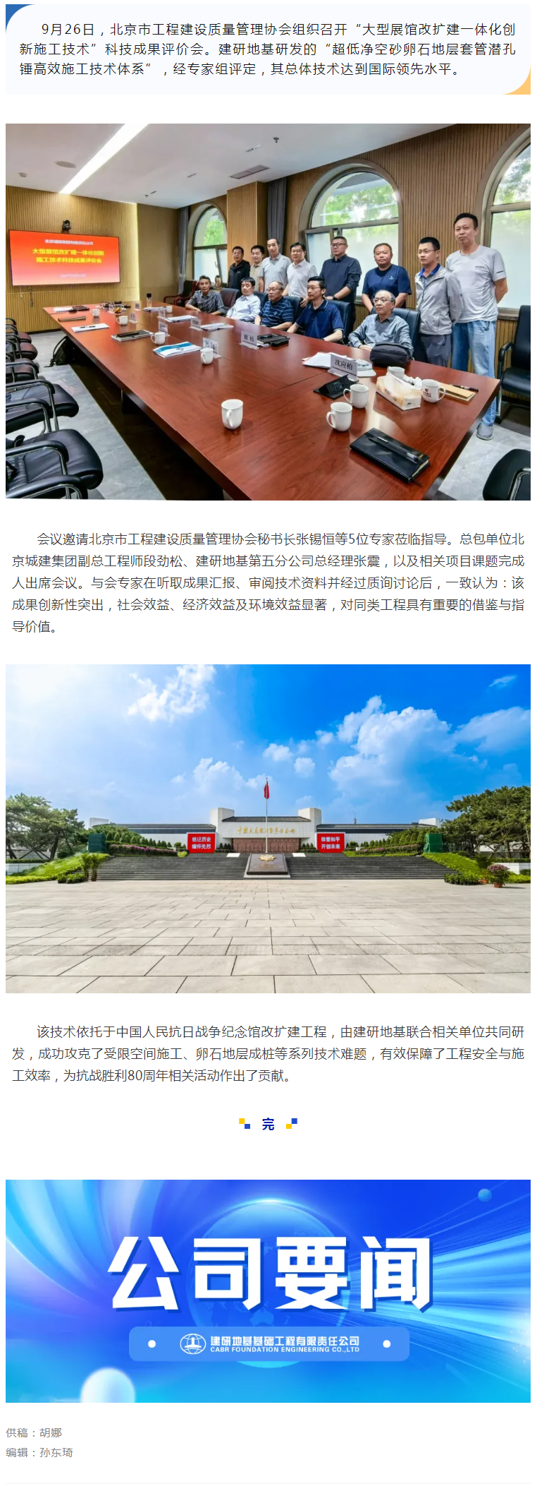 建研地基新技术助力中国人民抗日战争纪念馆改扩建工程优质竣工