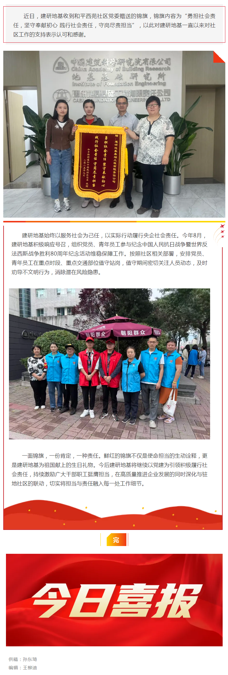 和平西苑社区党委向建研地基赠送锦旗
