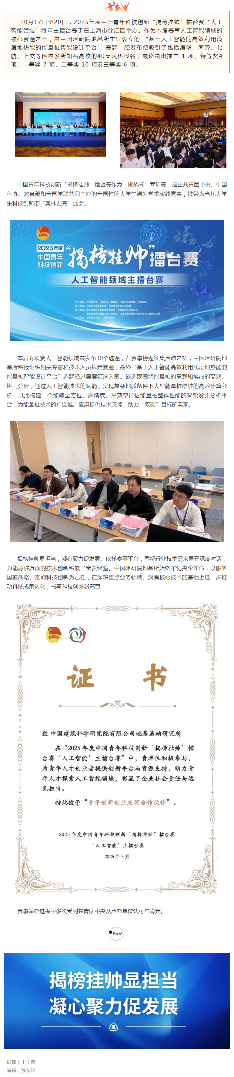 中国建研院地基所发榜引智——助力2025年度中国青年科技创新“揭榜挂帅”“人工智能领域”领域赛事圆满收官