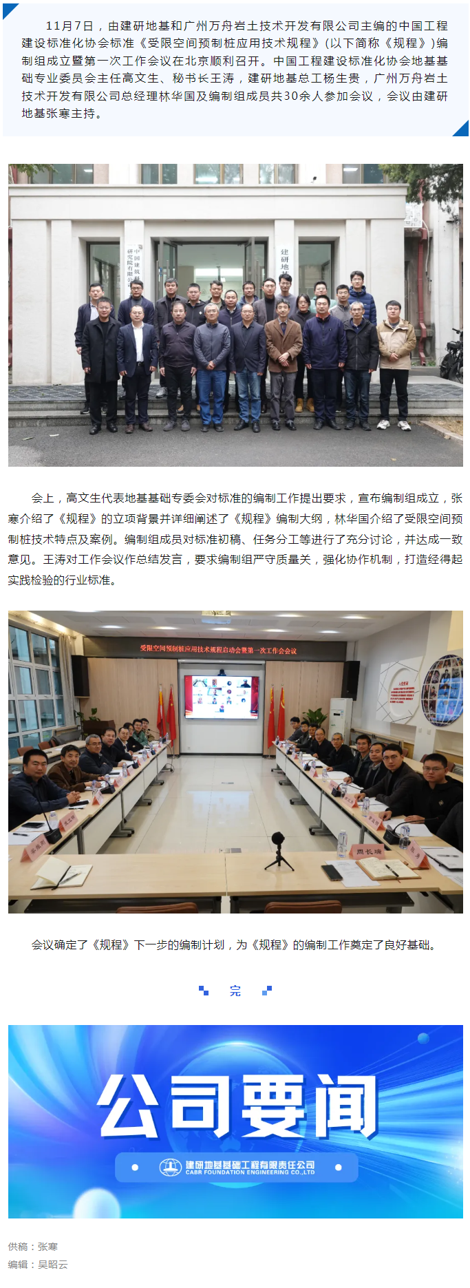 协会标准《受限空间预制桩应用技术规程》编制组成立暨第一次工作会议顺利召开