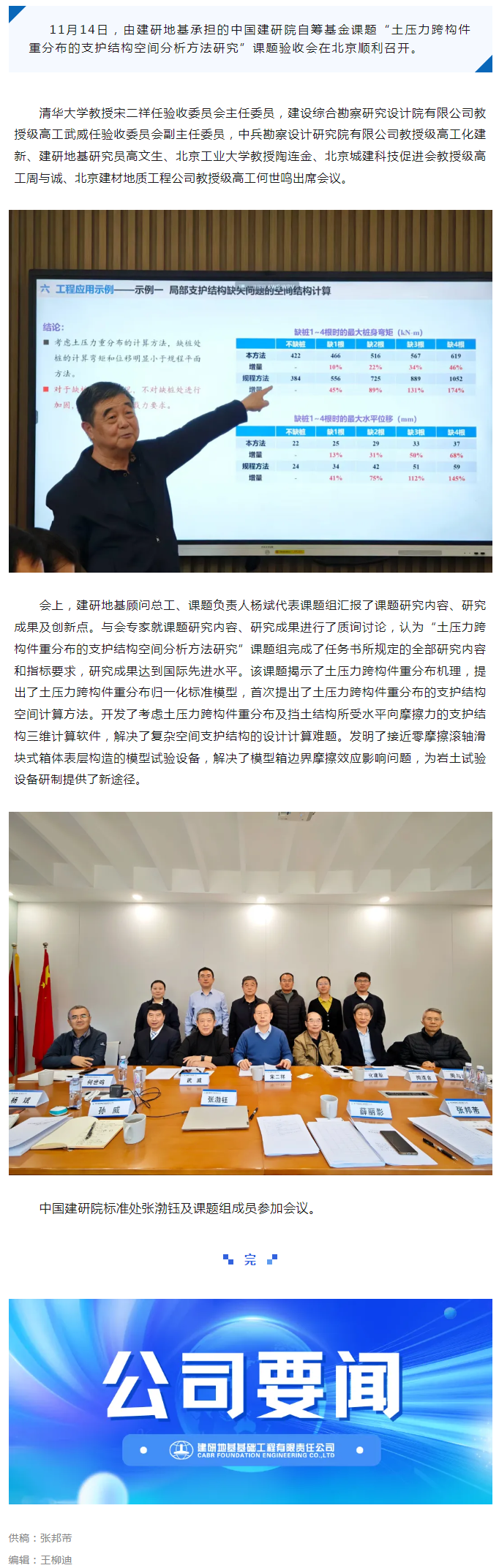 建研地基承担的中国建研院自筹科研基金课题“土压力跨构件重分布的支护结构空间分析方法研究”顺利通过验收评审