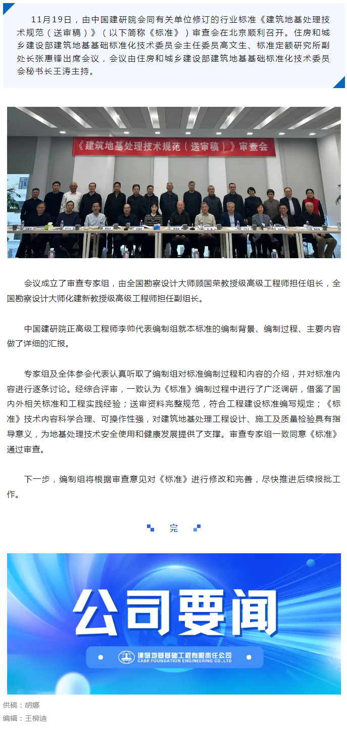 行业标准《建筑地基处理技术规范(送审稿)》顺利通过审查