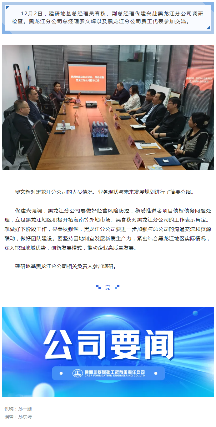 建研地基总经理吴春秋一行赴黑龙江分公司调研检查