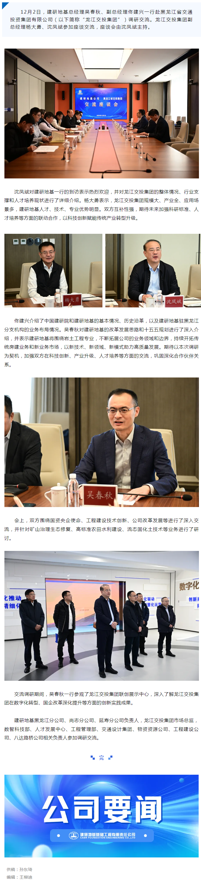 建研地基总经理吴春秋一行赴黑龙江省交通投资集团有限公司调研交流