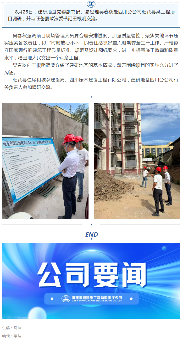 建研地基总经理吴春秋赴四川分公司调研交流