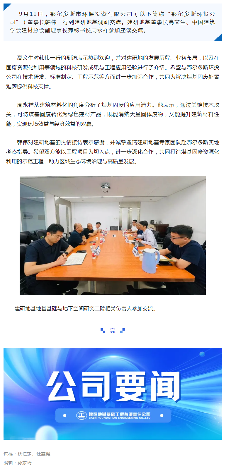 鄂尔多斯市环保投资有限公司一行到建研地基调研交流