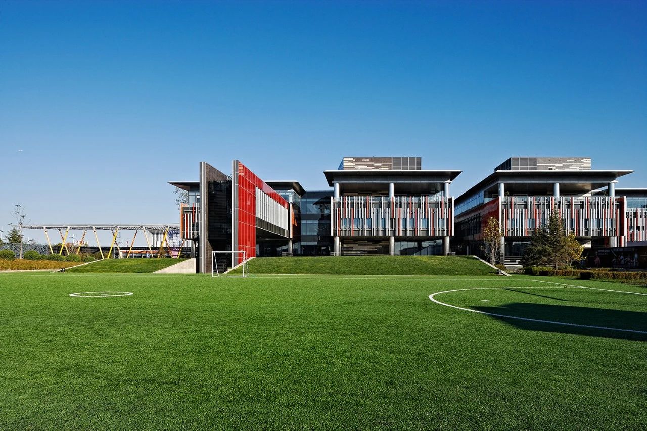 李宁营运中心是北京李宁体育用品有限公司的总部办公场所,具有办公、研发、展览、会议、运动、展销等多种功能。项目由中国建研院建筑设计院和澳大利亚考克斯建筑事务所联合设计完成,建筑以一条贯穿南北的长廊,以鱼骨式的布局,将西侧的三座研发、办公楼以及东侧的展览、会议、运动及展销大厅联为一体,并营造出既通透,又有凝聚力的半室外空间,成为项目的空间锚点。同时项目的建筑设计、景观设计和室内设计紧密结合,整体环境丰富连贯,融为一体,建筑造型轻盈而富有动感,色彩明快悦目,彰显了体育运动主题。