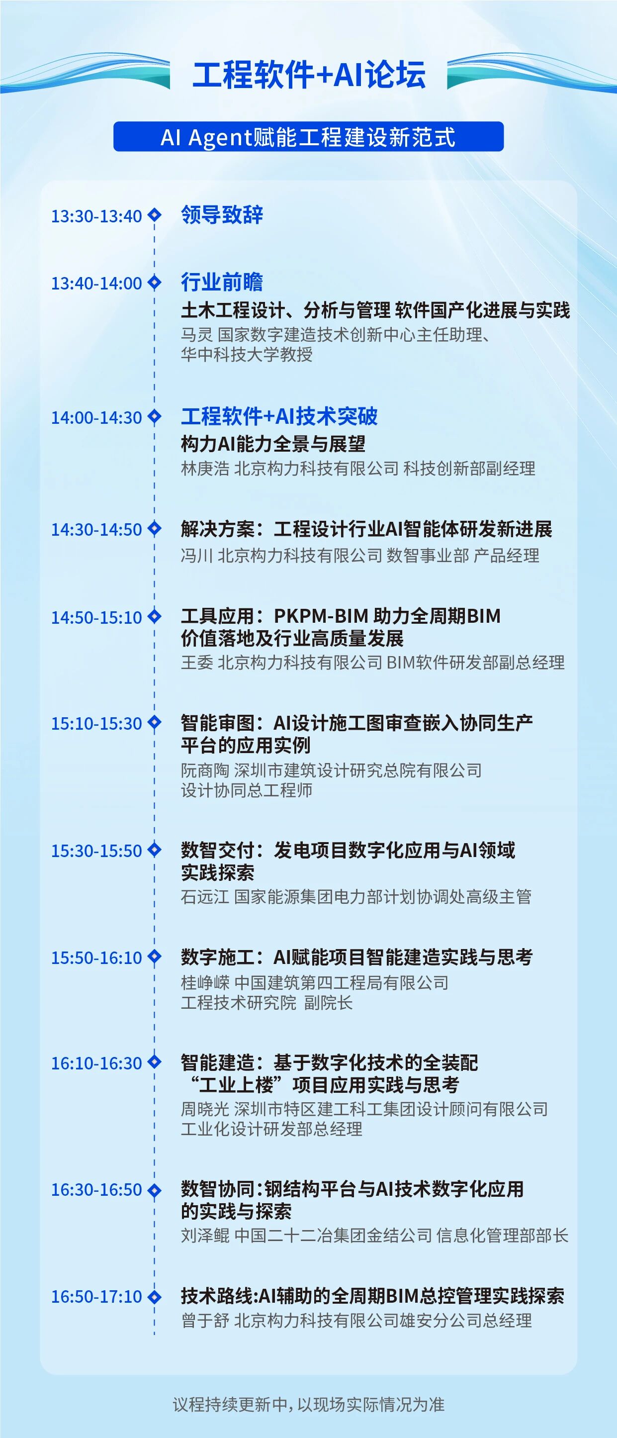 为贯彻落实党的二十届三中全会精神,响应“抓紧打造自主可控的产业链供应链、健全强化工业软件发展"要求,深化工业软件核心技术攻关、构建开放协同的国产工业软件生态,中国建筑科学研究院有限公司拟于2025年9月16日举办“工程数字化大会2025”。会议以“践行国家战略,共建自主生态——工程软件+AI”为主题,将重点聚焦工程设计软件核心价值、AI驱动的智能工程实践、BIMBase平台能力及其在工业、电力、建筑、交通等领域的国产化替代应用情况,为工程数字化发展注入新动能。诚挚邀请您莅临此次盛会!
