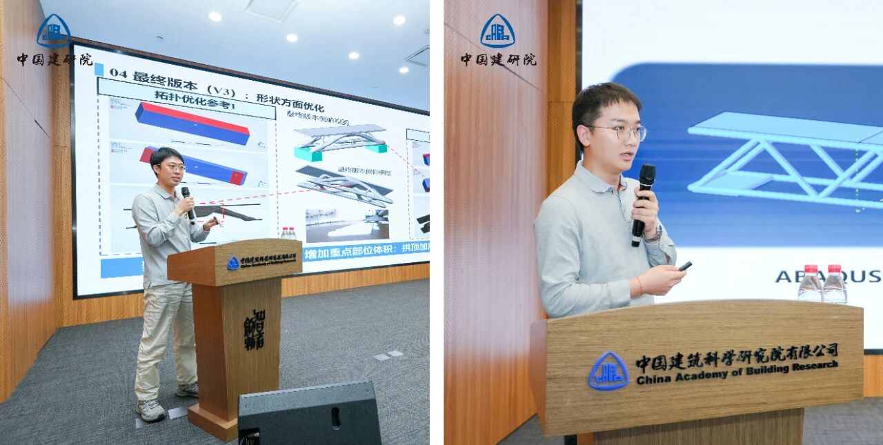 欢迎会在超级有氧鼓《旗开得胜》的热烈气氛中拉开帷幕。会上,参训学员以组为单位展示新员工设计大赛中的参赛作品,宣讲设计理念和思路。各组学员运用仿生学设计、算法助力、拓补优化等方式,创作出造型新颖、结构精巧的桥梁模型,并通过3D打印方式展现。在经过初步设计、方案比选、数字建模、试验改进等环节后,肖从真、薛明对每个作品的方案创意、结构设计、受力分析等方面进行专业点评。经过现场打分和实验室承压检测,共评选出优胜奖、最佳创意奖、最佳结构效率奖三个奖项,王阳、肖从真、王翠坤分别为获奖团队颁奖。